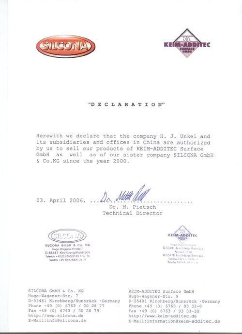 Keim-Additec與翁開爾公司是全方位的合作伙伴,雙方從1996年開始合作,翁開爾作為其中國及東南亞總代理,全權(quán)負責(zé)該區(qū)域產(chǎn)品銷售及市場推廣。