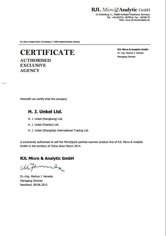 翁開(kāi)爾公司與德國(guó)安捷萊RJL公司達(dá)成合作協(xié)議,翁開(kāi)爾公司是德國(guó)安捷萊RJL公司的中國(guó)總代理。