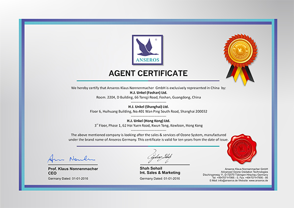 翁開爾公司于2009年與德國ANSEROS安索羅斯公司達(dá)成合作協(xié)定,雙方在產(chǎn)品銷售、市場拓展和技術(shù)交流上合作良好。佛山翁開爾是德國ANSEROS安索羅斯公司中國區(qū)代理。