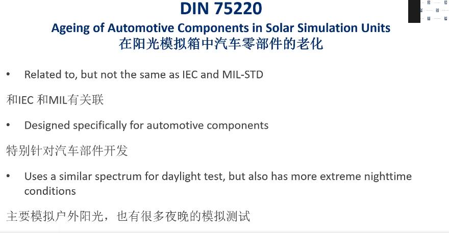 本次研討會將詳細(xì)解讀為您詳細(xì)的介紹國際電工委員會IEC 采用的測試電子產(chǎn)品的常見方法,特別是IEC60068-2-5太陽輻射測試和光老化測試標(biāo)準(zhǔn)。
