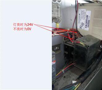 3、 當(dāng)繼電器燈亮,但燈管仍沒有點(diǎn)亮,那我們可以測(cè)試左圖中的繼電器的電壓是否為24V,如果是則進(jìn)入下一步,不是則表面這個(gè)繼電器損壞。