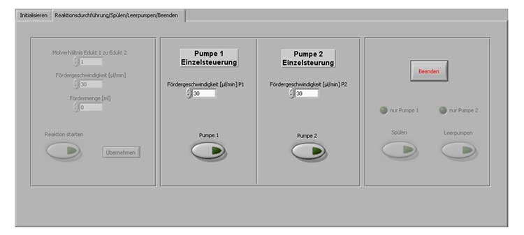 整個(gè)微型反應(yīng)器系統(tǒng)需要兩臺(tái)外部計(jì)算機(jī)來控制的微型齒輪泵(微型齒輪泵品牌:彗諾HNPMikrosysteme GmbH),確保兩種離析物的混合比例以及反應(yīng)器核心內(nèi)化學(xué)成分的平均停留時(shí)間都能達(dá)到較佳狀態(tài)。