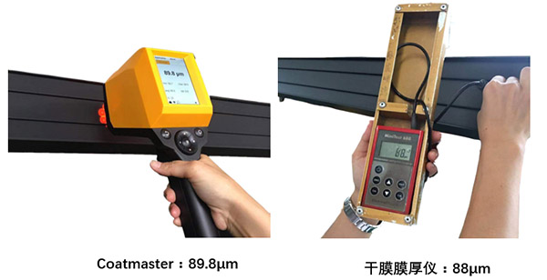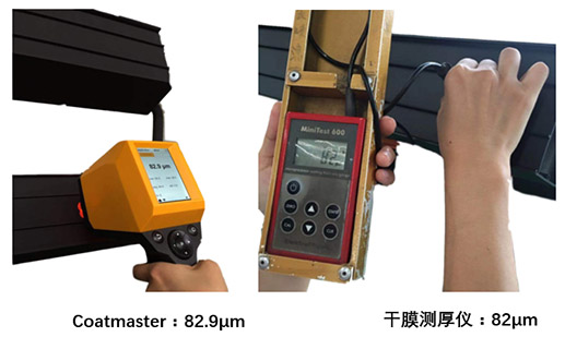 用兩種膜厚測(cè)試方法在鋁型材上同一位置分別測(cè)試未固化和已固化的膜厚