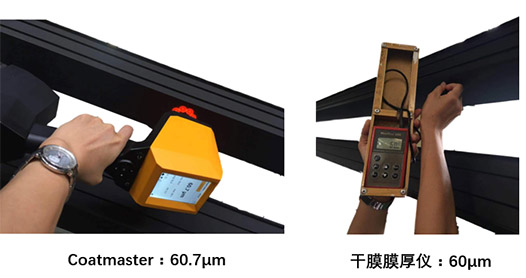 結(jié)論:在鋁型材上相同位置測(cè)試數(shù)據(jù)接近,且Coatmaster重復(fù)性和精度要更好;