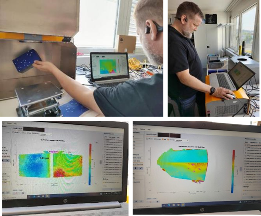 圖:采用涂魔師非接觸整體膜厚成像系統(tǒng)測量電芯絕緣涂層厚度