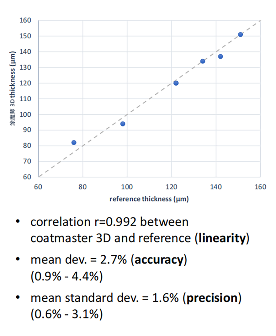 對(duì)于電芯棱角處的絕緣涂層測厚,過往的測厚方法只能通過測出側(cè)平面的涂層厚度,再根據(jù)相關(guān)性預(yù)估棱邊處的絕緣涂層厚度。但研究表明,由于涂料表面張力、涂層固化參數(shù)、邊緣曲率和噴槍的空間噴涂模式等因素影響,側(cè)面與棱邊涂層厚度呈現(xiàn)很弱的相關(guān)性。意識(shí)到該問題后,各大電池制造商更關(guān)注電芯的棱邊、R角的涂裝工藝和質(zhì)量。
