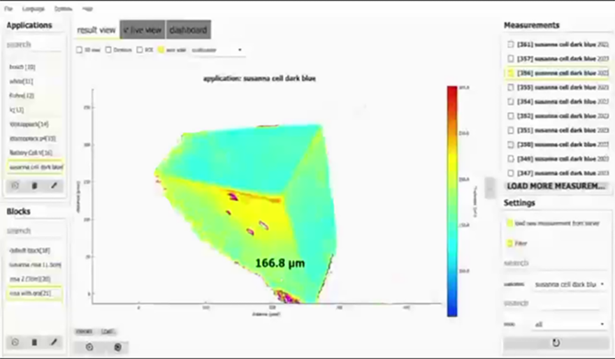 4、 測試視頻,軟件可提前選擇ROI, 或移動(dòng)鼠標(biāo)可更細(xì)致觀察涂層厚度分布情況