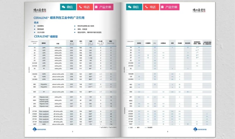 Euroceras 是一家生產(chǎn)廣泛合成蠟的制造商,品牌名為 CERALENE®。Euroceras 擁有超過 45 年的聚乙烯蠟生產(chǎn)經(jīng)驗。該公司擁有生產(chǎn)非極性 LDPE、HDPE、PP蠟以及極性共聚物蠟和獨特聚酯蠟的反應器。CERALENE® 蠟在塑料中的主要應用領域包括顏料和添加劑母料的分散、PVC加工中的外部和內部潤滑,以及在技術塑料和纖維填充復合材料中的流動改進。