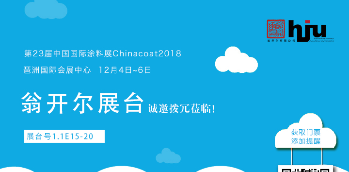 2018中國國際涂料展(chinacoat2018),翁開爾將攜手眾多國外聞名儀器、化工品牌共同參展,我們有幸邀請(qǐng)到國外的專家與您面對(duì)面交流。屆時(shí)歡迎蒞臨1.1E15-20展臺(tái)。